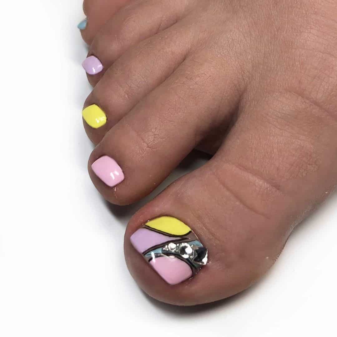 Разнообразие цветовых оттенков и появление всевозможных новинок дизайна позволяет создать по-настоящему творческое оформление ногтей. Разноцветный педикюр хорошо смотрится не только в классическом варианте, когда используется несколько оттенков и минимум декора, но и в нестандартных решениях. Здесь представлены одни из лучших идей для стильного украшения ногтей на ногах: