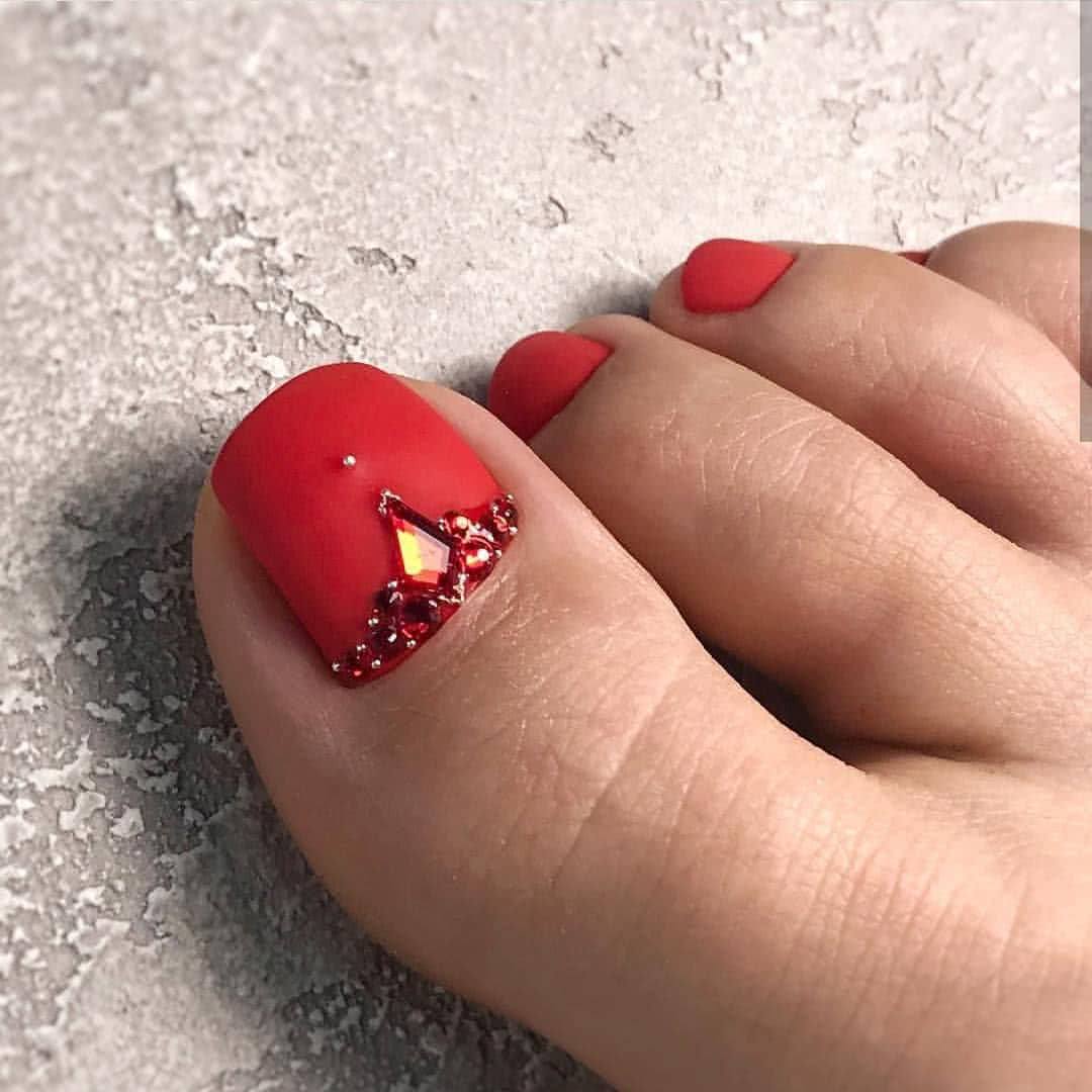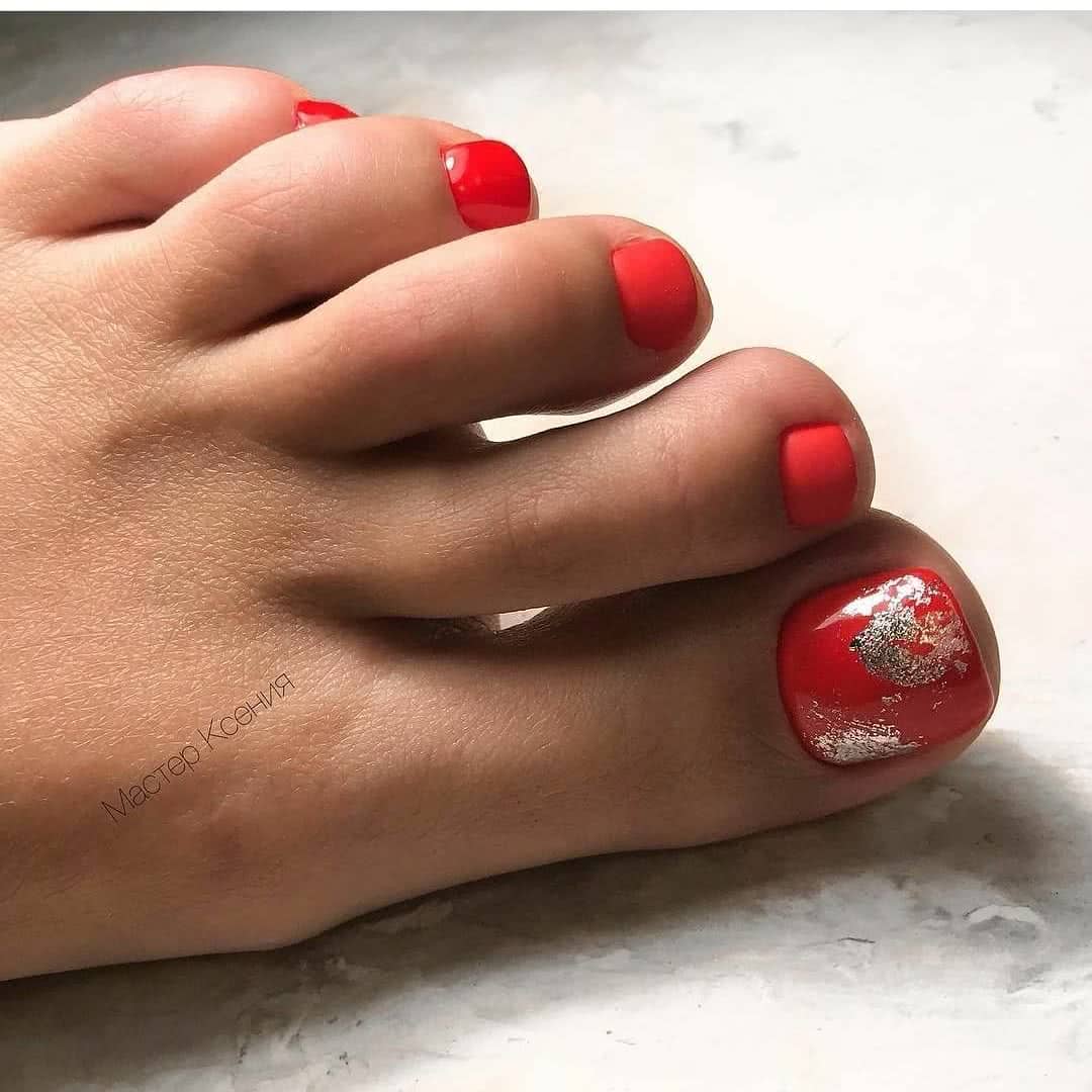 Одно из шикарнейших сочетаний, притягивающих к себе внимание окружающих, чувственных и модных во все времена. Красный цвет мгновенно преображает весь педикюр, даже если его использование совсем минимальное, в пределах одного ногтя