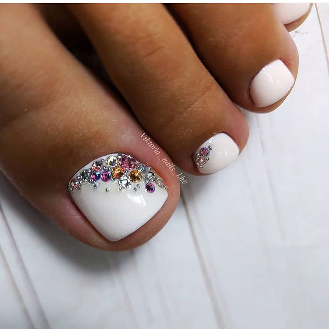 #5 Белый педикюр: лучшее решение для декора ногтей