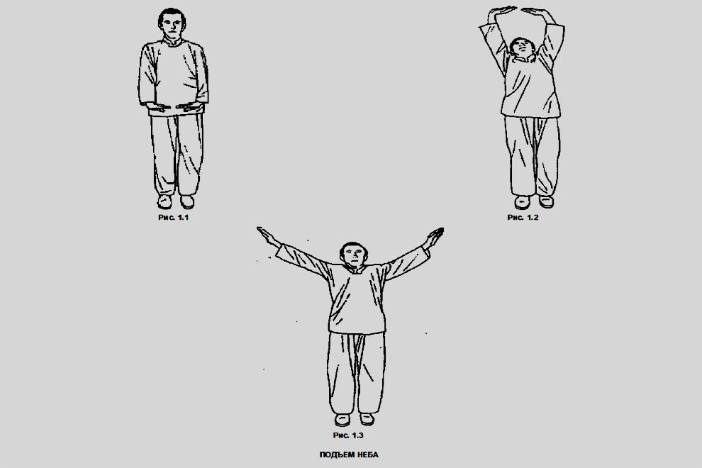 Это упражнение называется «Подъем неба». Как и во многих других случаях, его форма обманчиво проста. Важна не форма сама по себе, а поток энергии, порождаемый выполнением упражнения.