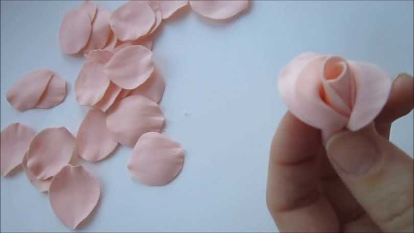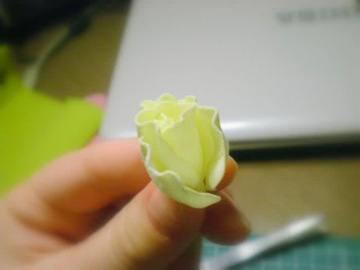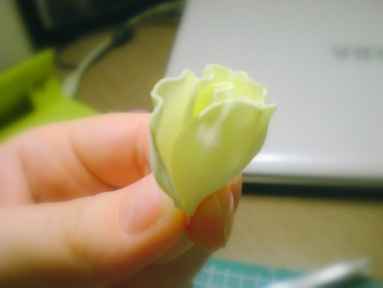 - Иногда советуют первой изготовлять бутонную розу. Для нее можно использовать заготовки, не разрезая их на отдельные лепестки.
