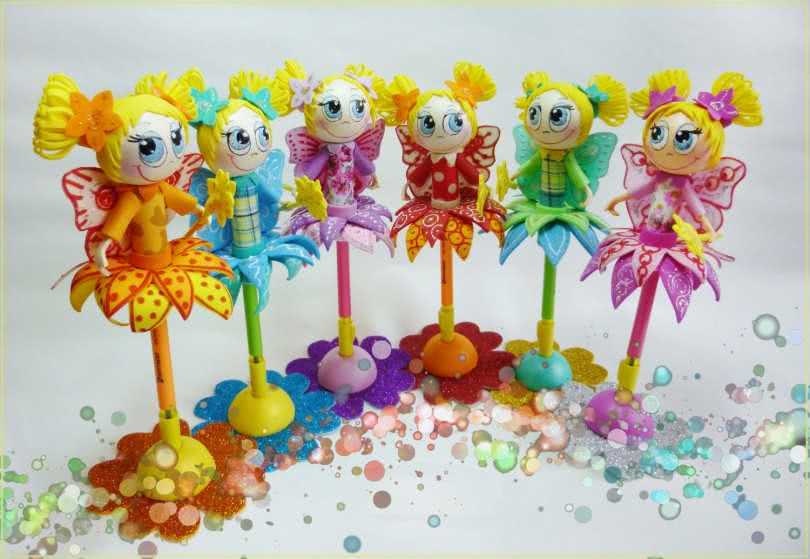 Ребенок с огромным удовольствием и усердием будет пользоваться ручкой и карандашом, если их украсить простыми поделками из фоамирана. Популярностью пользуются фигурки бабочек и стрекоз, закрепленные сверху . Для их изготовления потребуется материал ярких цветов и синельная проволока: