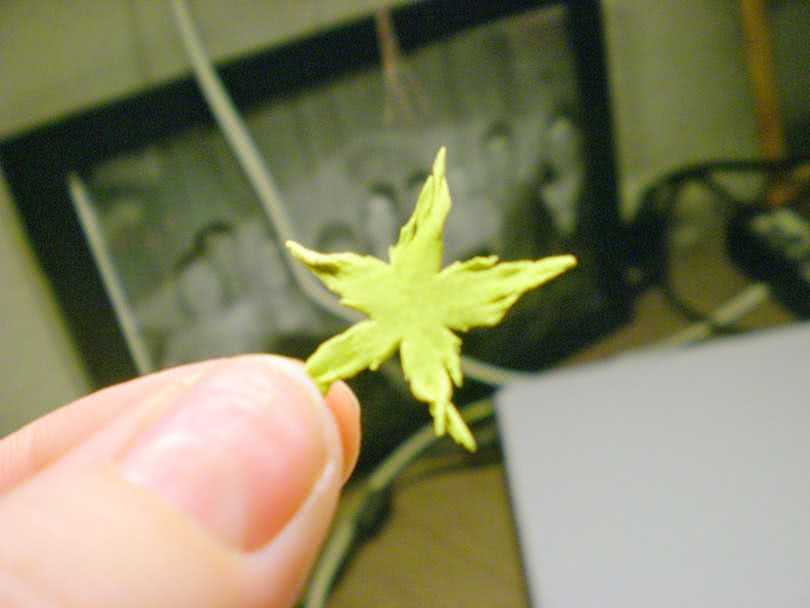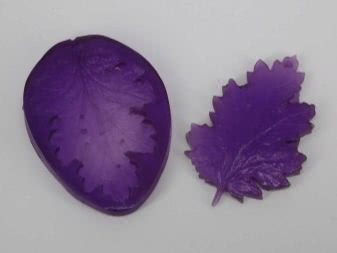 - Когда все будет готово, поверхность листочка для оттиска смазывается маслом, укладывается на силикон.