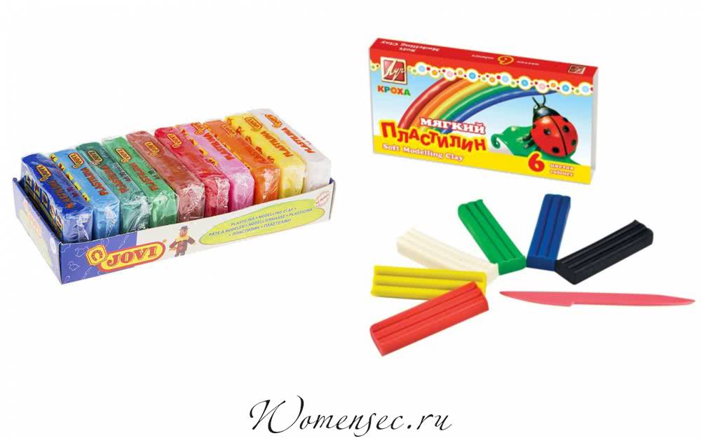 Для малышей лучше приобрести набор легкого или воздушного пластилина. Это красочный материал, мягкий, пластичный, легко лепится и не оставляет жирных следов.
