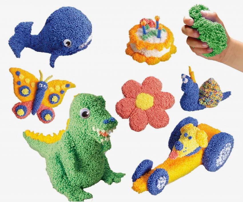 Воздушный пластилин представляет собой пластичную массу с однородной текстурой, работа с которой доставляет удовольствие. На рынке предлагаются разные виды материала, с такими дополнениями как блестки или пузырьки пенопласта, а благодаря разным цветовым пигментам он отличается огромным разнообразием цветов.
