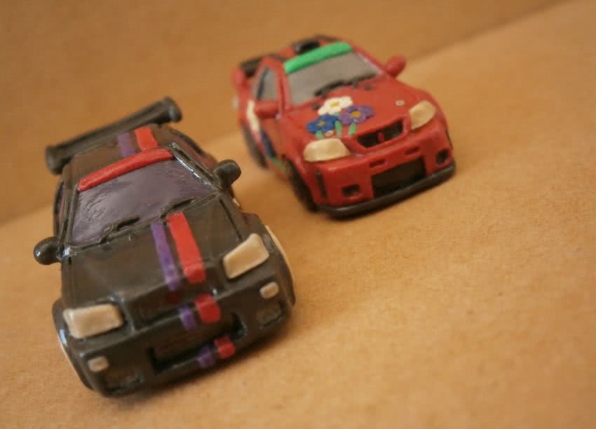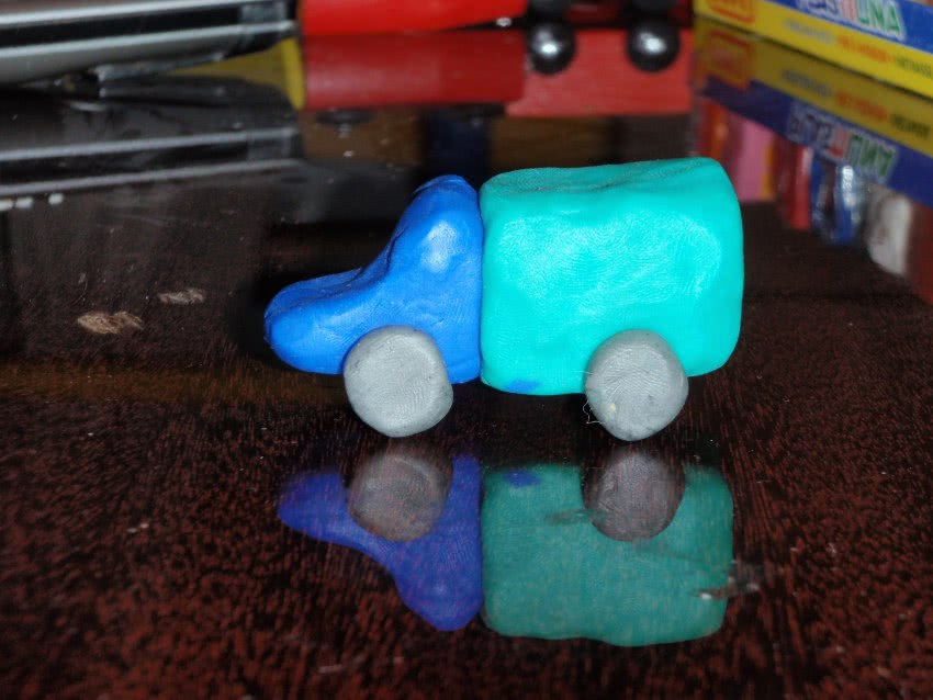 Сиденье гонщика следует изготовить из синего пластилина. После его помещают в углубление, которое специально сделано в кузове.