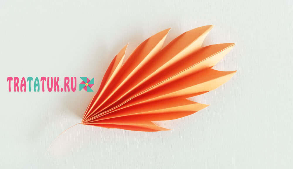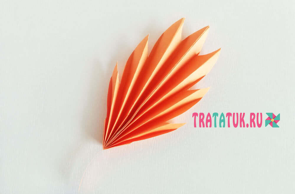 Соберите гармошку и, отступив примерно 1,5 см от нижнего края, придайте ей форму листочка при помощи ножниц.