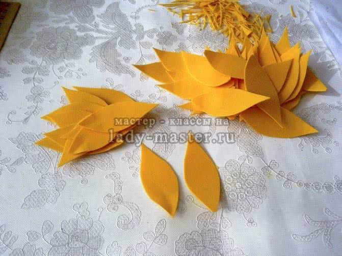 Главное, вырезать лепестки нужной формы и подходящего размера по подготовленным заранее выкройкам.