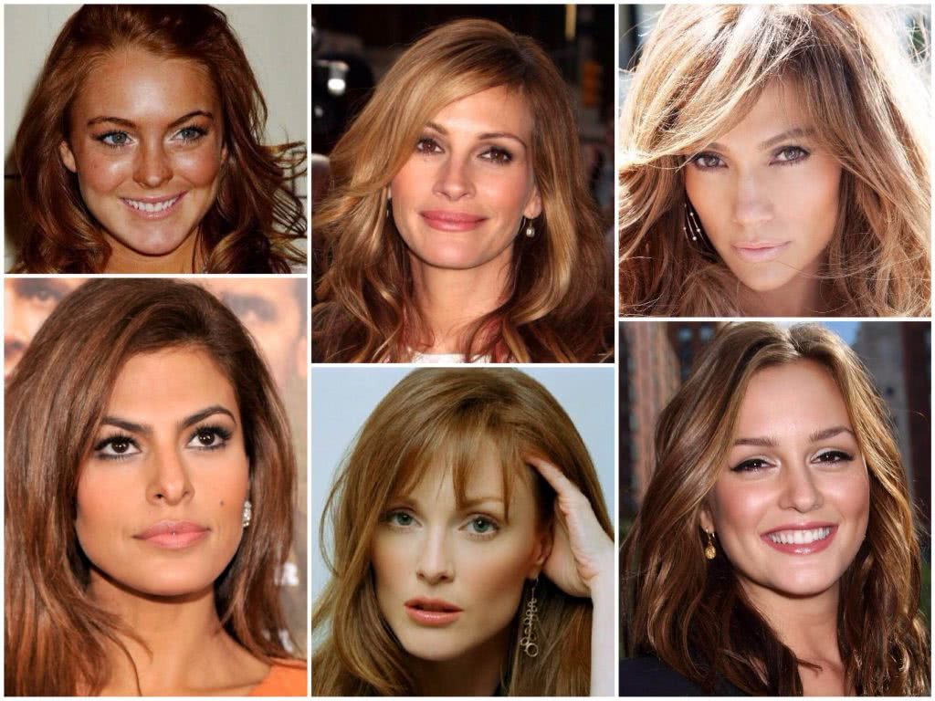 Для «осенних» представительниц характерны глубокие оттенки волос, чего не скажешь о девушках на фото цветотипа «Весна». Это могут быть насыщенные рыжие, каштановые и темные локоны. Данному типу очень идет окрашивание в стиле «выгоревших на солнце прядей». Во внешности всегда прослеживаются теплые нотки: в цвете кожи, волос и глаз.