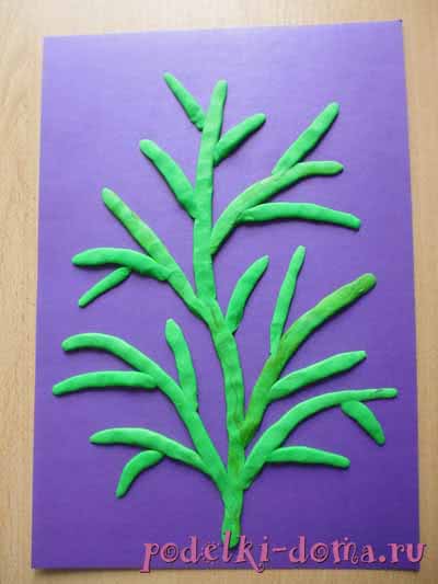 На досочке для лепки скатайте «колбаски» и прикрепите на картон, создавая веточки.
