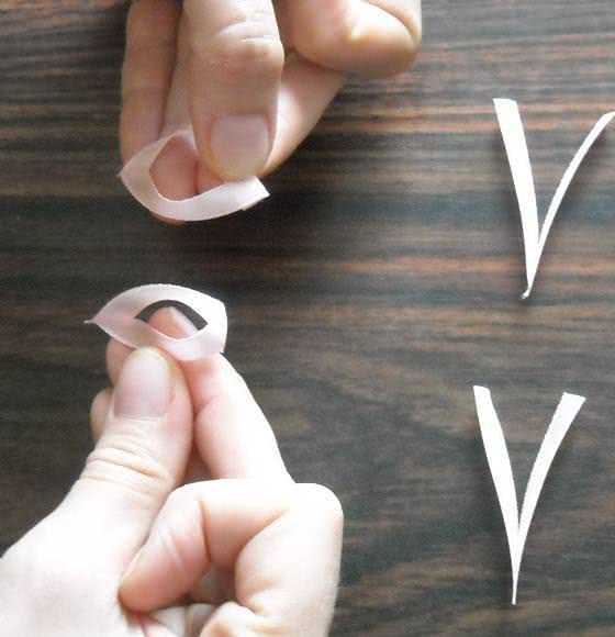Один кончик согнутого лепестка обрезаем наискосок и опаливаем зажигалкой.