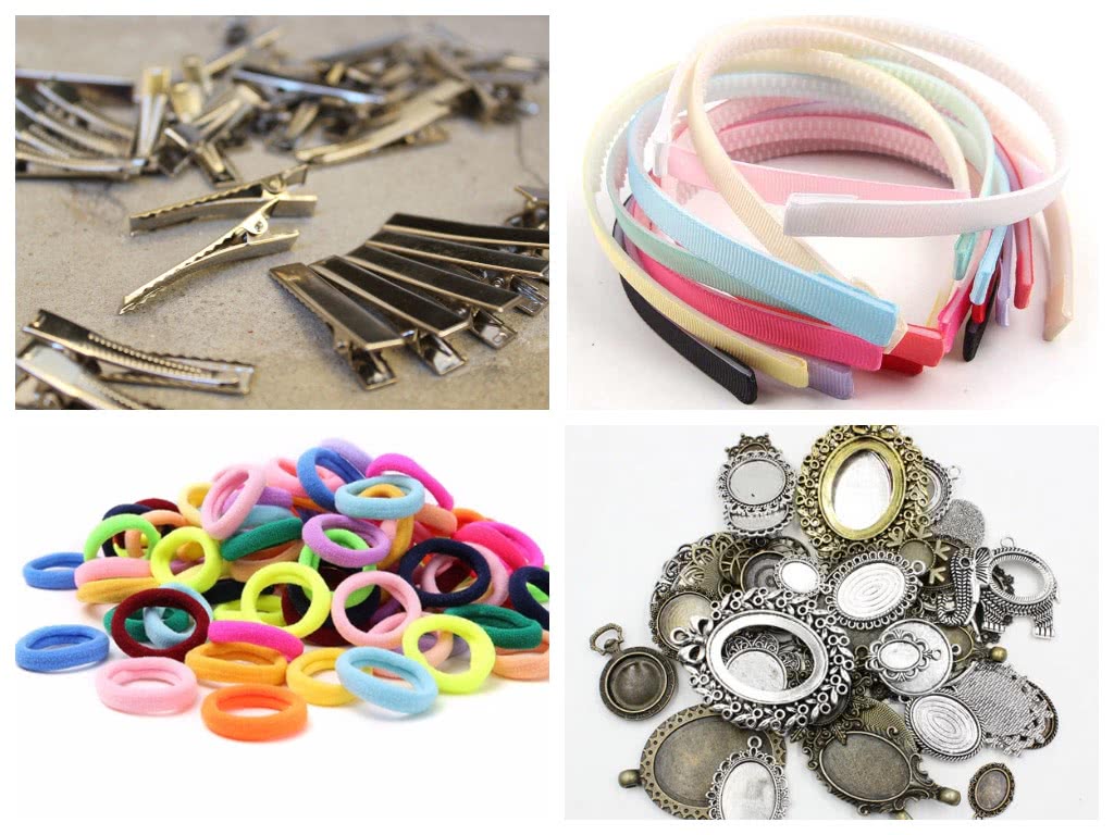 - Простые заколки, ободки, резинки, броши. Они понадобятся в качестве основы для готовых изделий. Также могут быть использованы кусочки картона, обтянутые тканью.