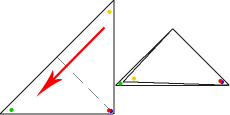 Жёлтый квадратик сворачиваем в треугольник.