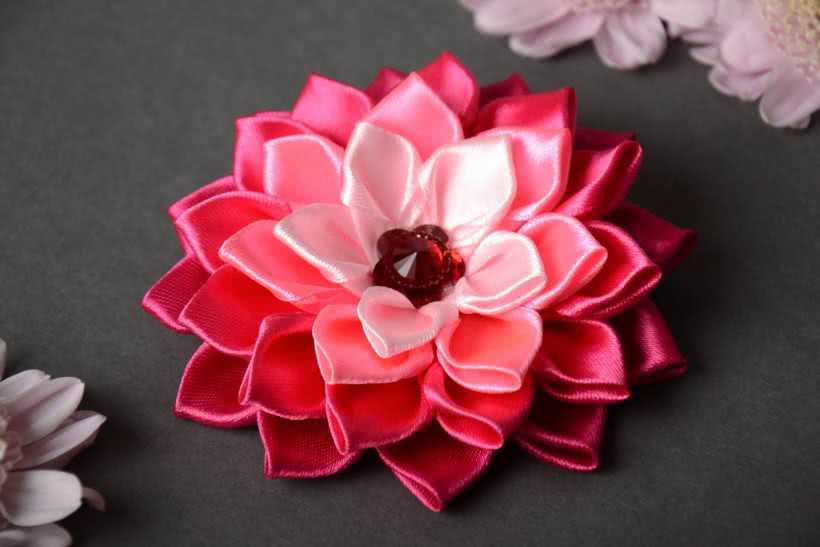Чтобы сделать заколку для волос по технике канзаши, можно использовать мастер-класс для начинающих с пошаговыми фото: