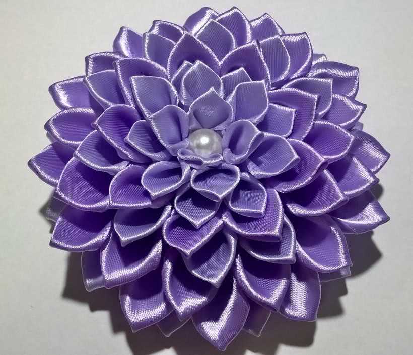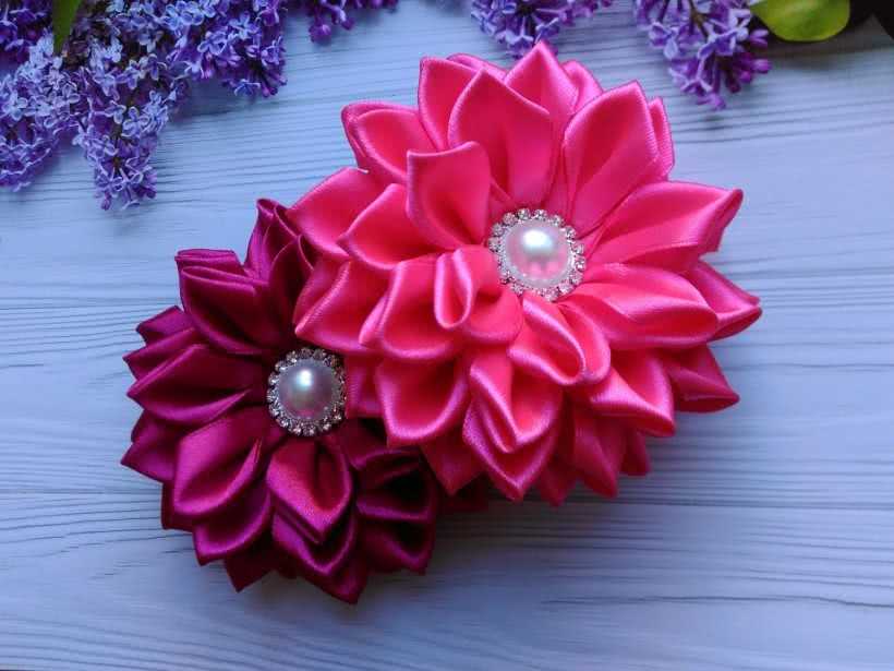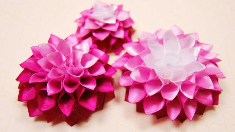 Посмотрите мастер-класс как сделать канзаши своими руками. Видео демонстрирует пошаговую сборку цветов георгина на резинке.