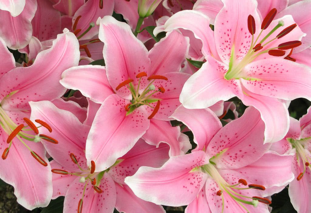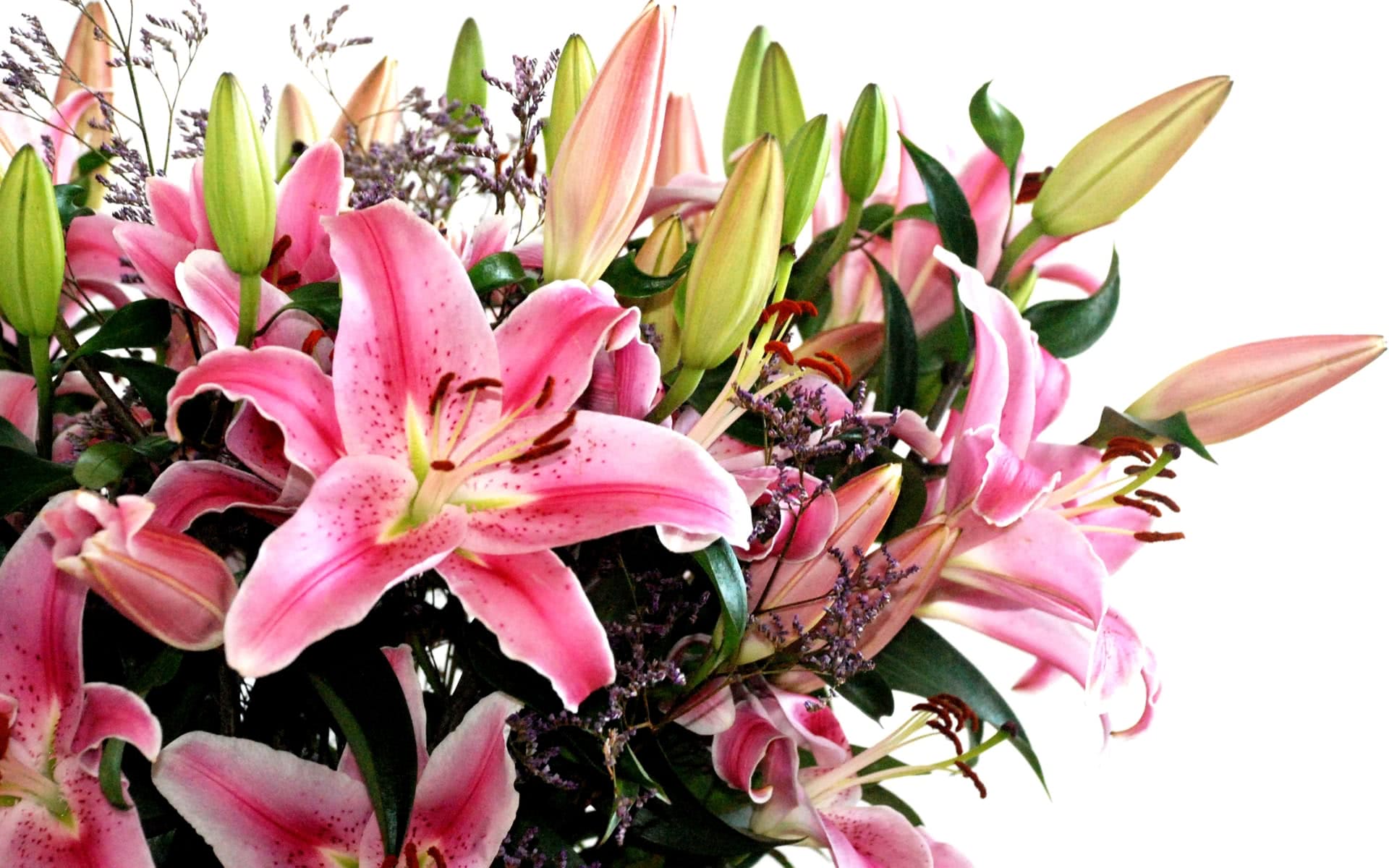 Красивая фотография букета лилий как распустившихся, так и не до конца созревших