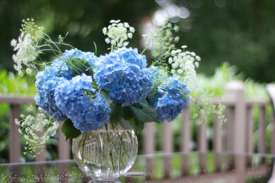 Белая ваза, голубые и розовые цветы. Простое и эффективное сочетание для хорошего букета!