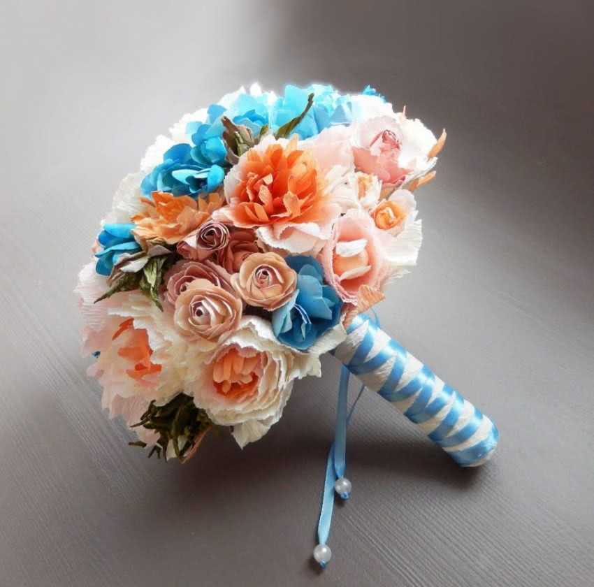 - Оберните букет в упаковочную бумагу и завяжите лентой.
