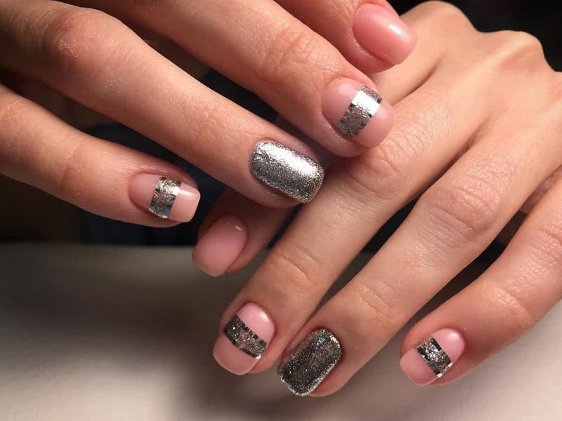 Использование блёсток для оформления дизайна ногтей является чудесным аналогом объёмных украшений, что позволит не перегрузит маникюр модницы-подростка, но заметно освежит и преобразит любое покрытие. Блестящие частички лучше использовать в качестве дополнений. Золотистые, серебристые, синие, розовые, сиреневые и любые другие блёстки могут входить в состав прозрачного лака или наноситься на ногти отдельно. Глиттер, конфетти, пайетки или блестящие полоски в этом случае пользуются наибольшим спросом.