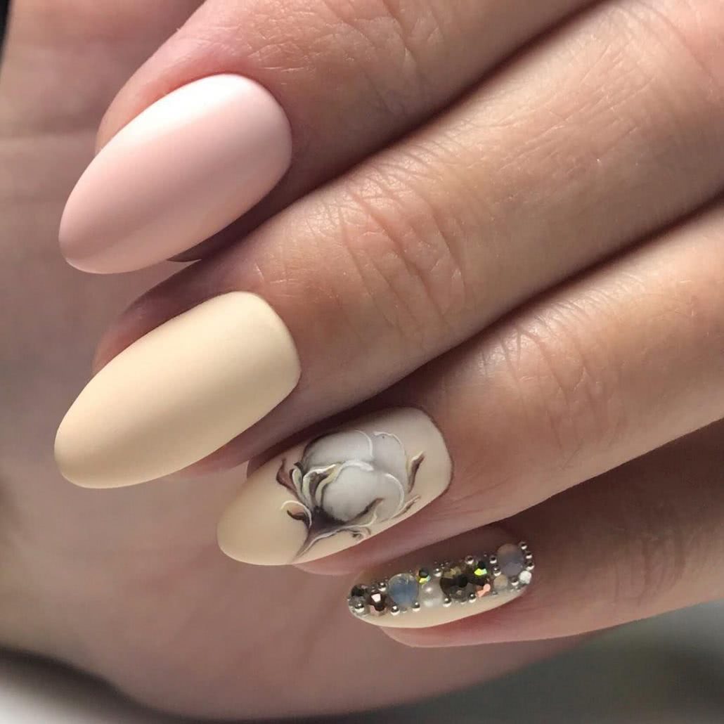 Спрос на нежный, романтичный дизайн также увеличивается. Его преимущественно предпочитают модницы, которых хотят универсальное покрытие на каждый день. В таком случае стоит присмотреться к нюдовым и пастельным оттенкам. Они хорошо сочетаются между собой и часто служат основой для рисунка. К примеру, нюдовое покрытие вместе с цветочным рисунком придает образу нотку романтичности. Он идеально подходит для свидания и просто на каждый день.