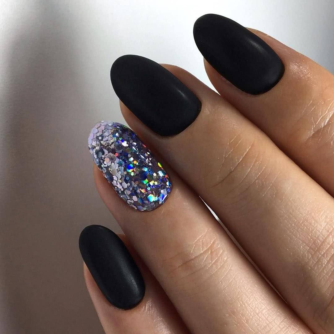 #2 Черный маникюр с блестками на короткие ногти