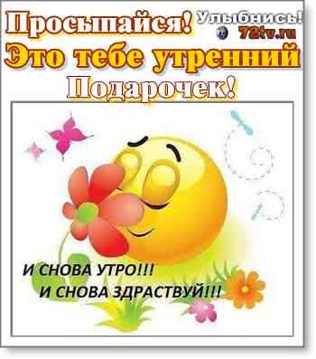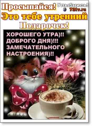 Доброе утро! Прекрасного дня и замечательного самочувствия! Улыбнись, тебя ждет прекрасный день, наполненный замечательными событиями, улыбками и приятными делами! Пусть утренняя свежесть подарит много впечатлений и новых идей! С пробуждением тебя!