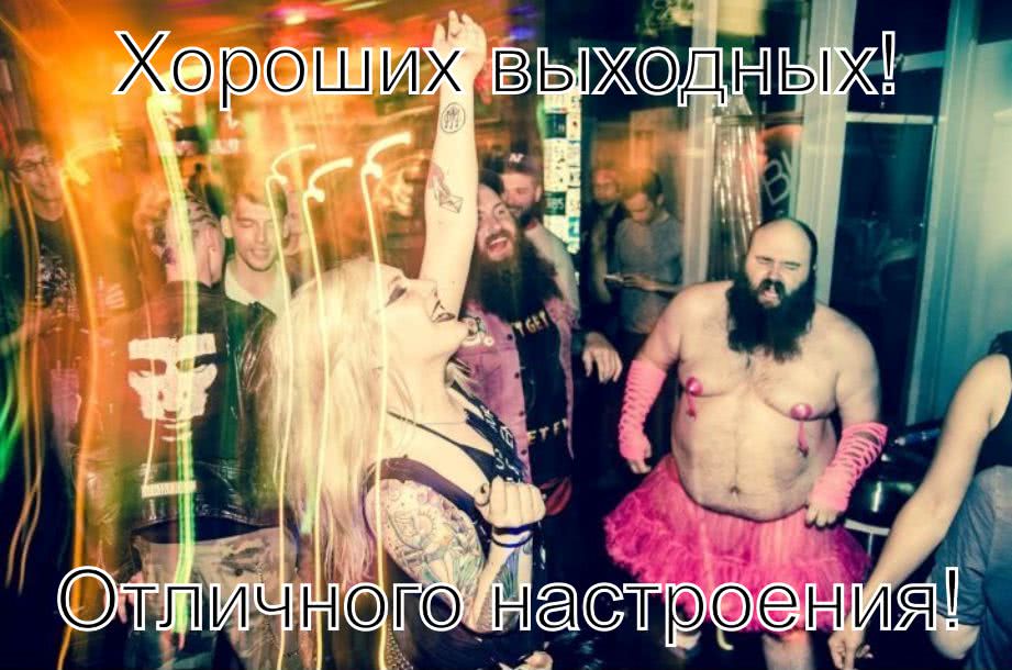 Очень веселых выходных субботы и воскресенья тебе и мне…Классного настроения тебе на весь день!!!
