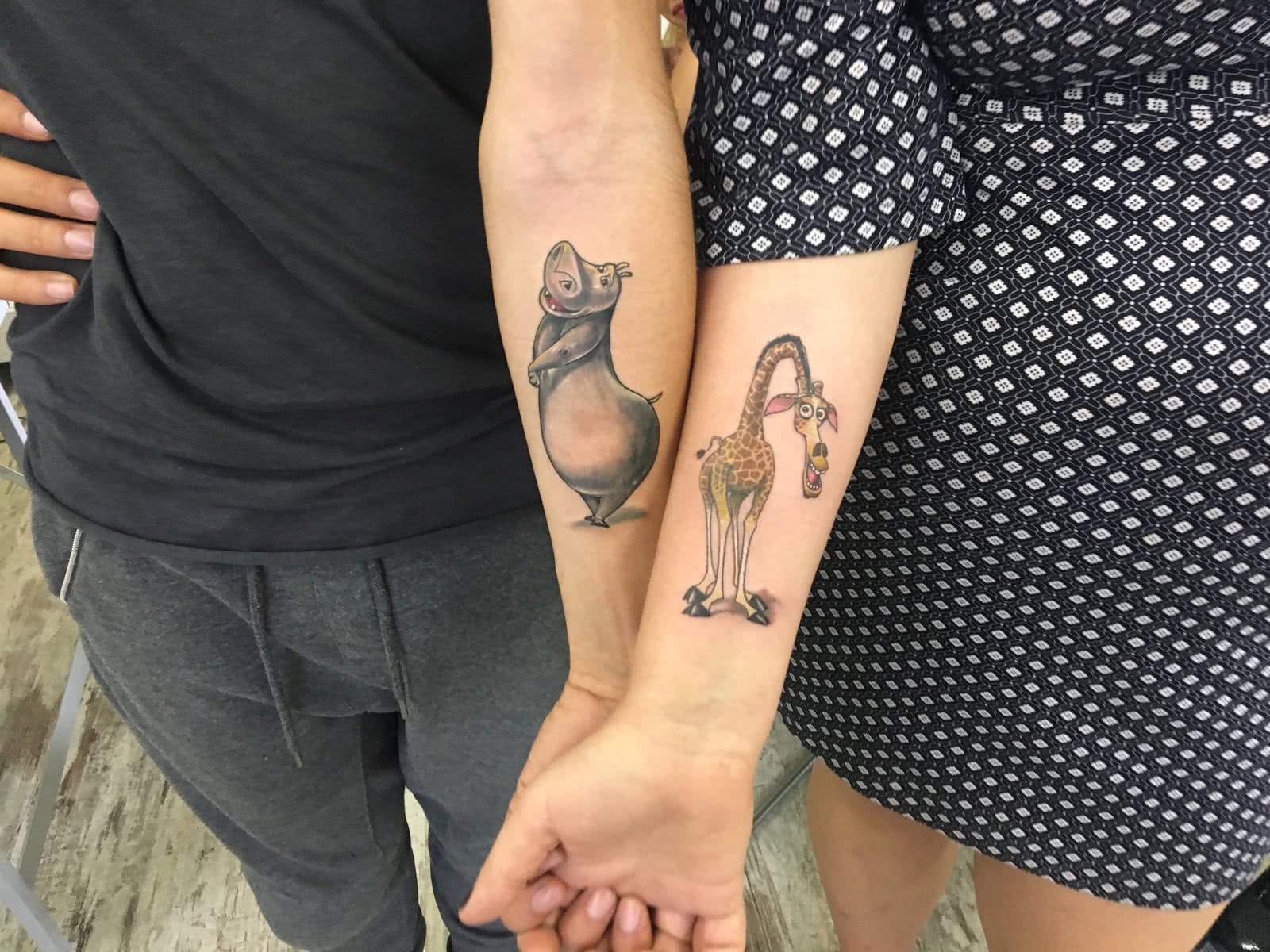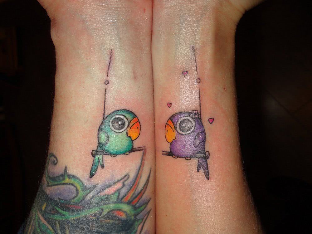 Что касается выбора техники, то это могут быть как однотонные, так и красочные изображения в стиле акварель, дотворк, геометрия, олд скул или нью скул, литтеринг либо минимализм. При этом каждую деталь парных татуировок и их смысловое значение принято обсуждать всей группе желающих подчеркнуть свою дружбу.