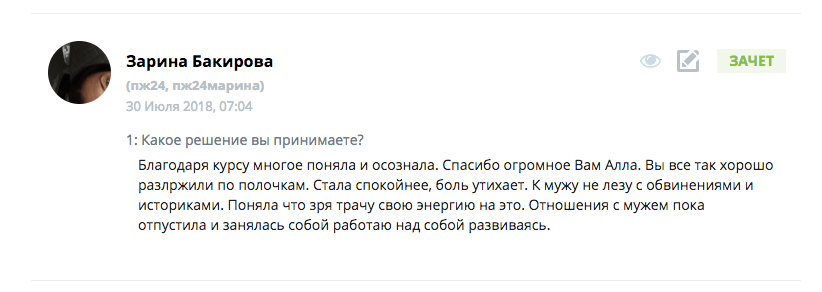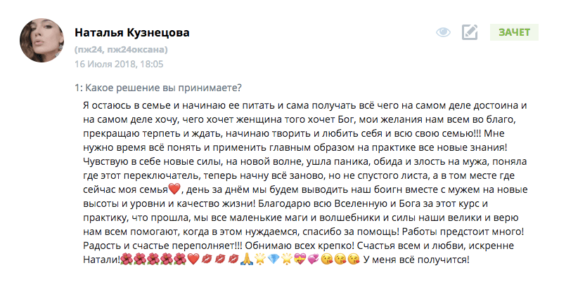 Вот что пишет участница курса «Любовный треугольник», которой пришлось сделать непростой выбор: