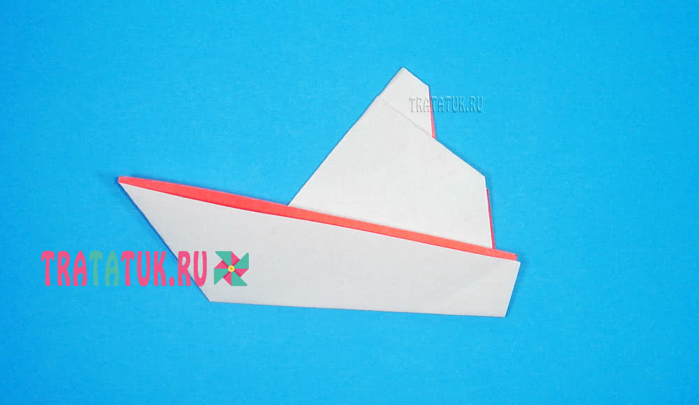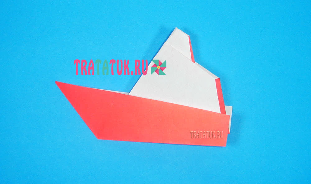 Два края фигуры складываем внутрь к вертикальной линии, они будут играть роль бортика теплохода.