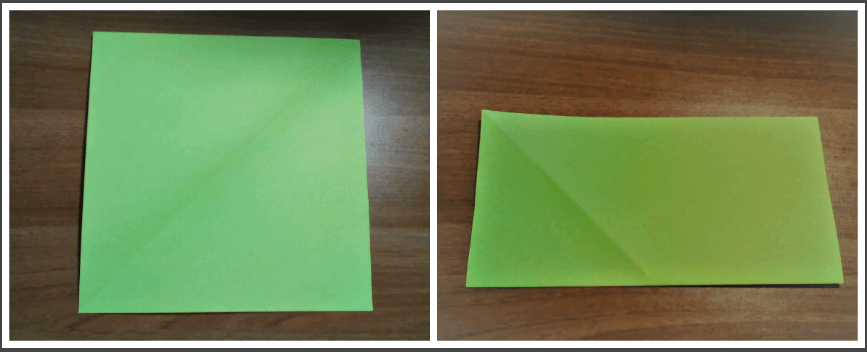 - Бумажный лист сложить ровно по диагонали, разгладить.