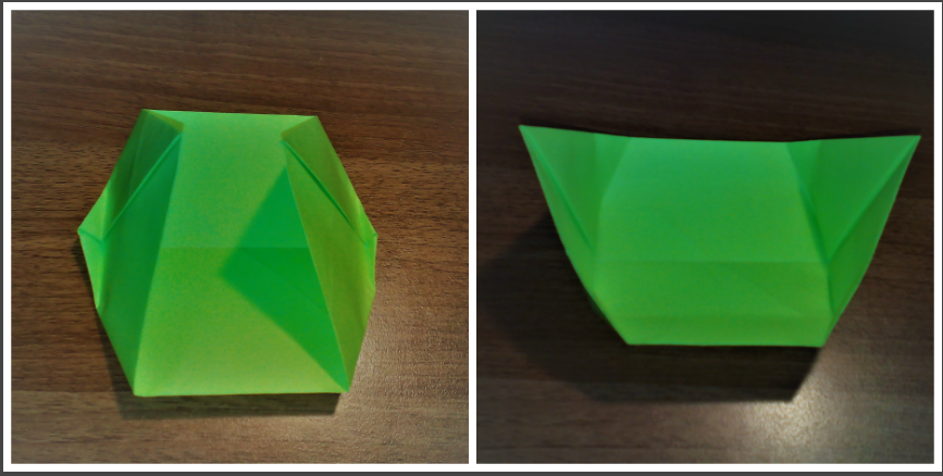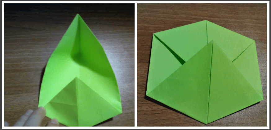 Раскрываем изделие по намеченным линиям, а края верхушки складываем поближе к центру.