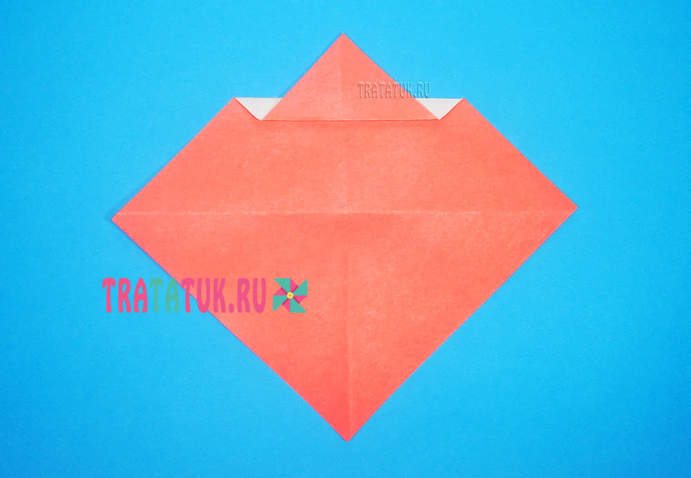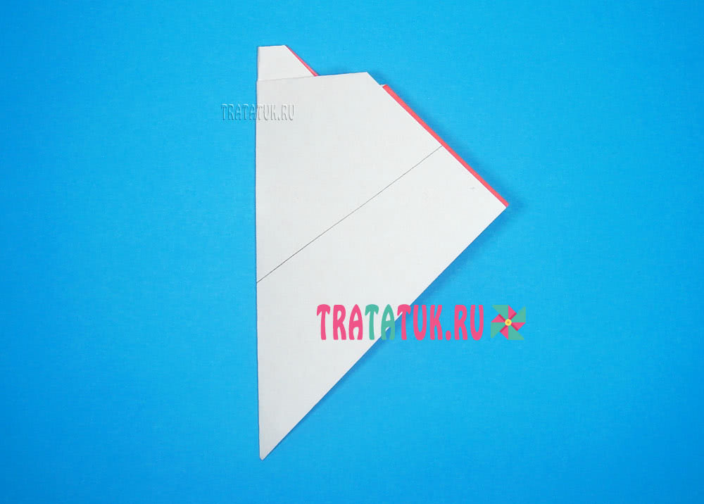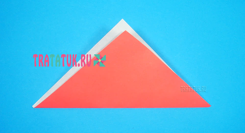 - У полученного треугольника загнуть вверх узкую полосу, делается это с правой стороны, расправить.