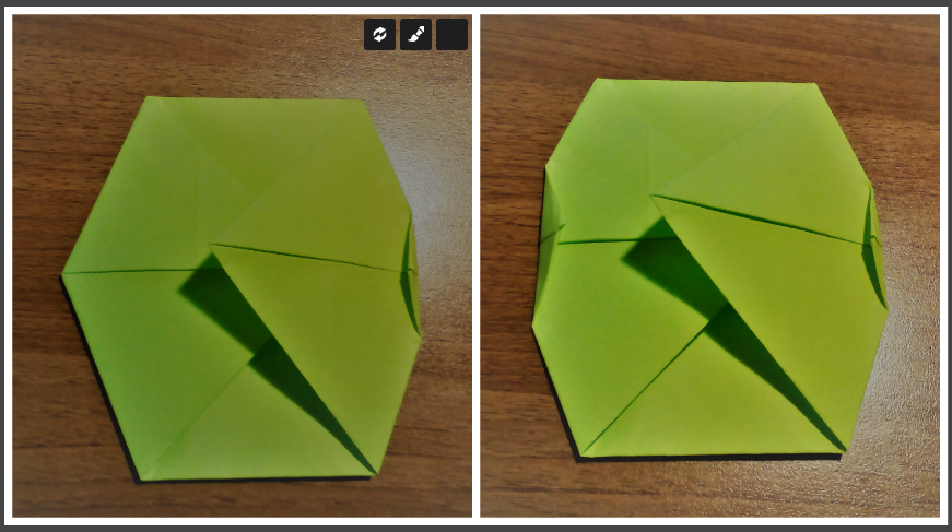 - снова слегка раскрываем треугольник и сводим два угла так, чтобы получился квадрат;