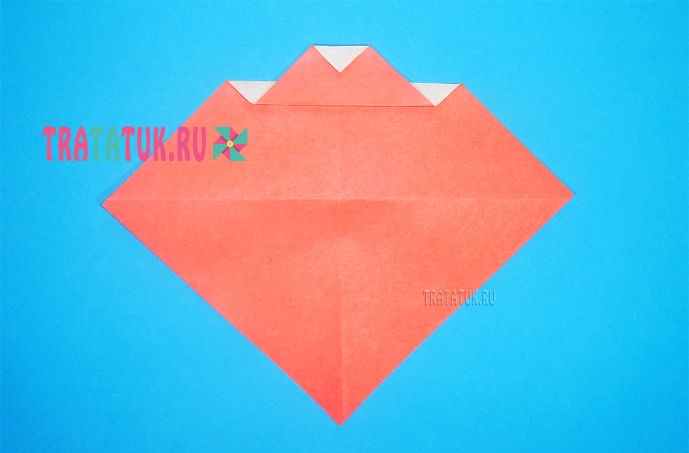 - У нижней загнутой части с обеих сторон загибаем треугольники кверху.