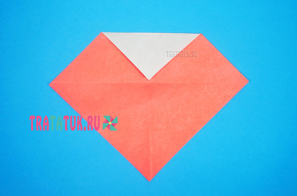 - Снова переверните заготовку треугольником к себе и разверните вдоль по центру.