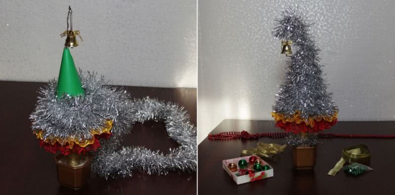 Поделка на конкурс в школу «Елка из мишуры на Новый год 2021»
