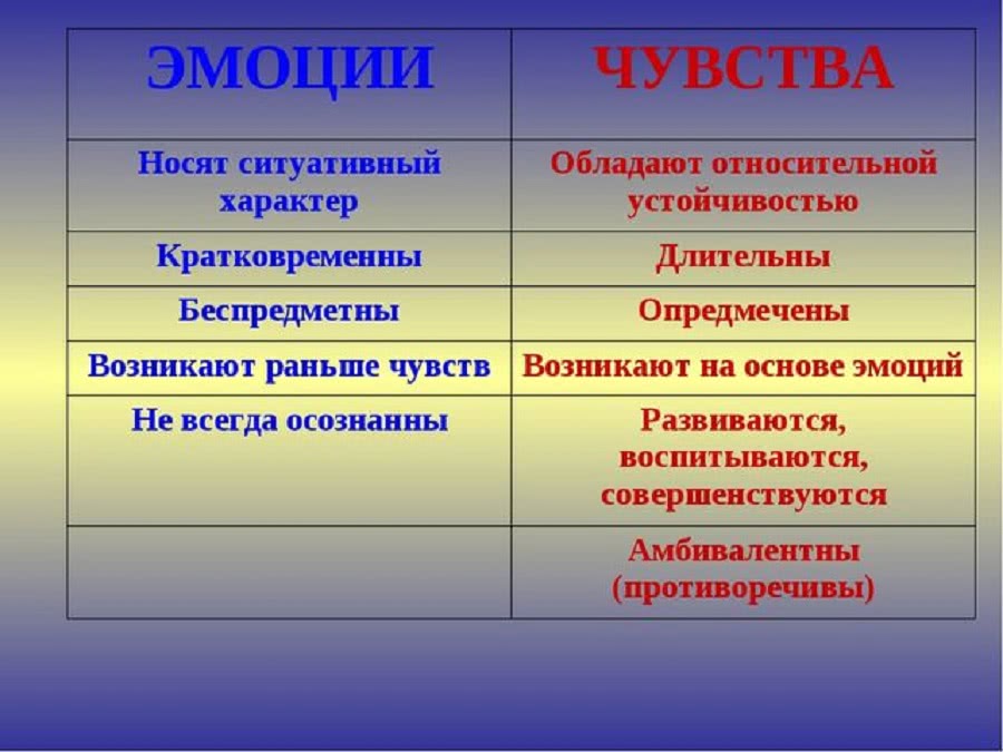 Чтобы понять, чем отличаются эмоции от чувств и других проявлений, важно знать их главные характеристики: