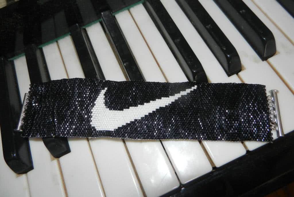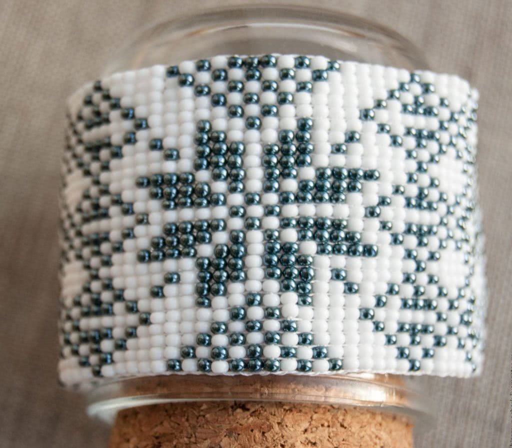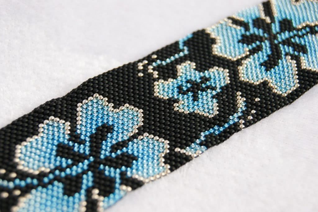Для такой фенечки лучше взять чешский бисер, так как он качественнее откалиброван. Неравномерный размер китайского материала может вызывать смещения и перекосы. Если планируется использование китайского бисера, то его следует дополнительно отсортировать по размеру.
