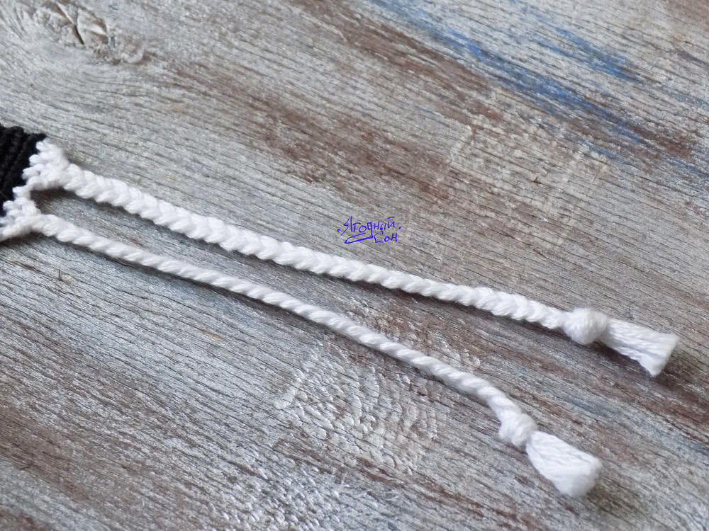 А вот так можно оформить завязку, чтобы можно было снимать (фенечка с регулируемой застежкой или скользящий узел). Выбирайте любой понравившийся вариант.