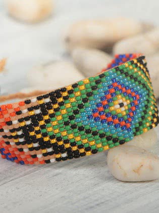 Широкий браслет из бисера с орнаментом украинской вышивки