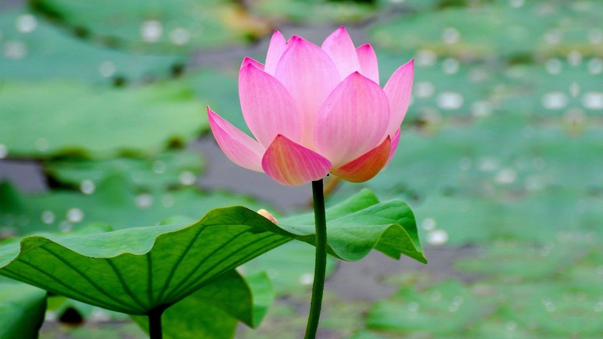 Вот эта картинка с красивыми цветами под дождем идеально подходит для рабочего стола вашего компьютера, слева мы имеем большую зеленую зону, где можно разместить множество иконок с папками, и программами.