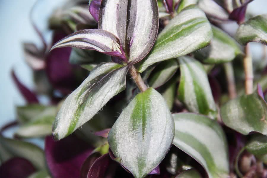 Вечнозеленый многолетник имеет сочные побеги до 1 м. Комнатный цветок характеризуется листочками широколанцетной формы до 10 см в длину. Лицевая сторона листков фиолетово-зеленого цвета; изнаночная сторона — фиолетовая с опушкой. Цветет долго с середины весны до конца лета. Соцветия небольшие розово-фиолетовые с тремя лепестками, собранные в миниатюрные соцветия на концах побегов.