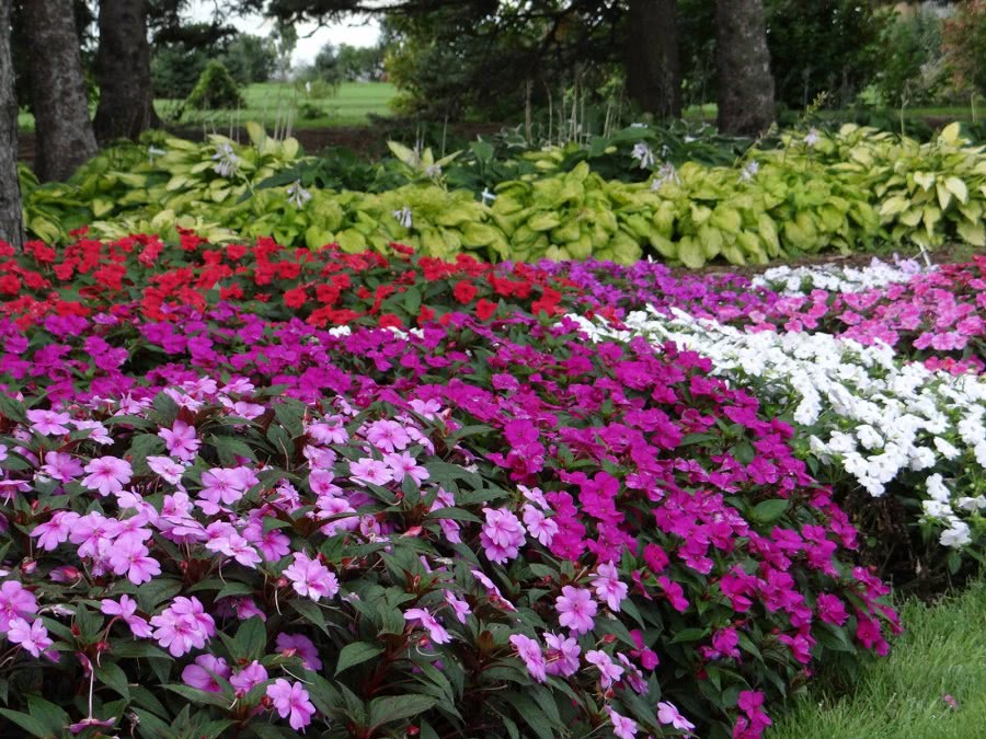 Среднерослые варианты создадут впечатление плавного перехода от высоких к низким растениям. Рекомендуется подбирать сорта с длительным цветением. Своевременно убирая увядшие бутоны, получится поддерживать гармонию на клумбе. Неприхотливые цветы станут верным решением.