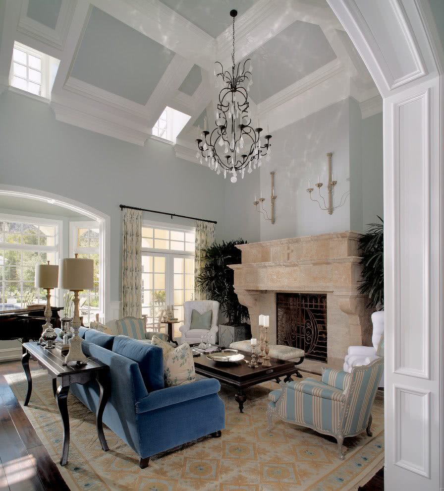 Необычный голубой потолок в интерьере полностью оправдывает выбор в его пользу по нескольким причинам. Одна из них — спокойствие и умиротворение, создаваемые благодаря этому цвету. Голубой — не самый яркий и тем более не темный цвет, способный оказать негативное влияние на настроение и даже вызвать психологические расстройства.