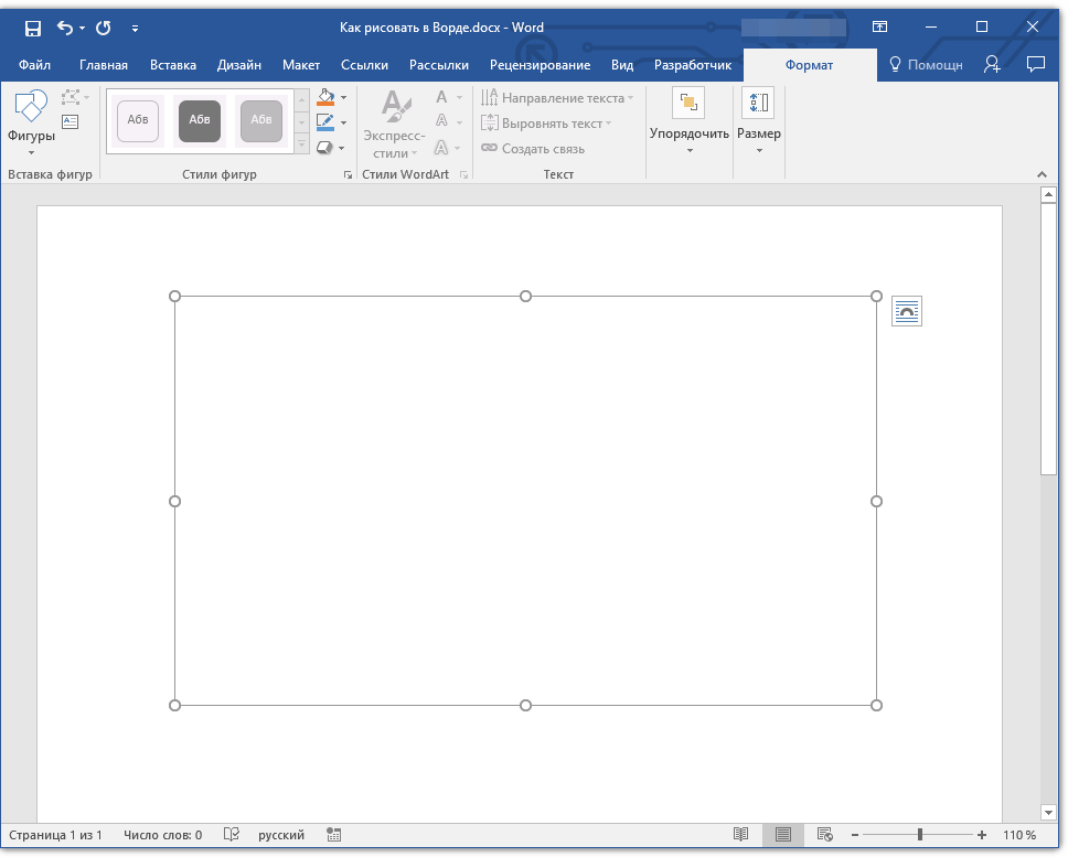 4. На странице появится прямоугольная область, в которой и можно начать рисовать.