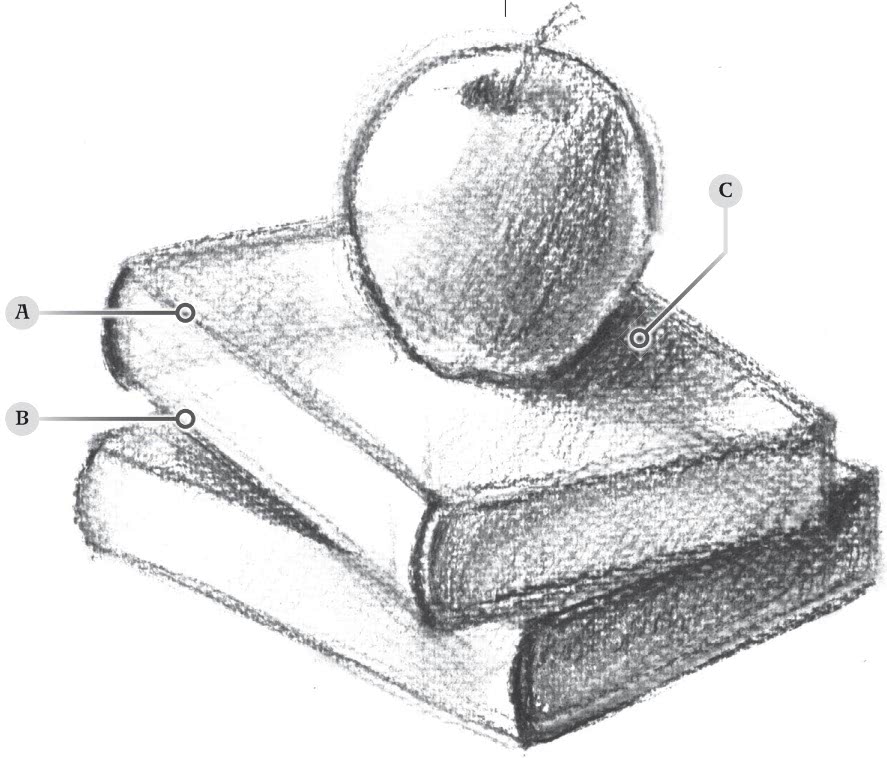 Рисовать книги нужно так, будто они сделаны из стекла. Это позволит лучше изобразить их линии и ребра.
