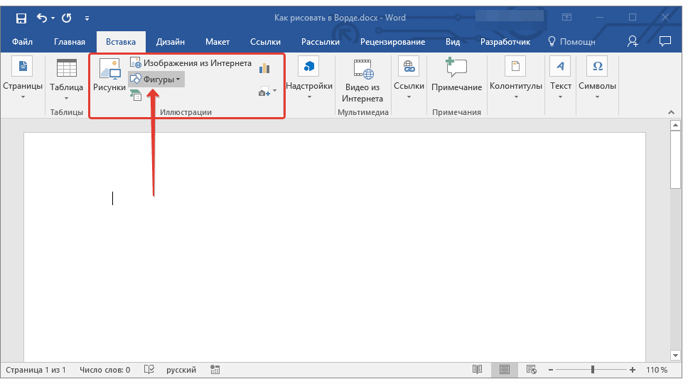 2. В группе иллюстрации нажмите на кнопку «Фигуры».