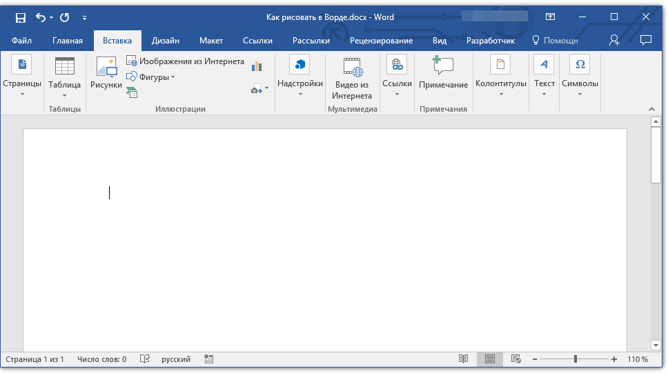 1. Откройте документ, в котором нужно сделать рисунок, и перейдите во вкладку «Вставка».