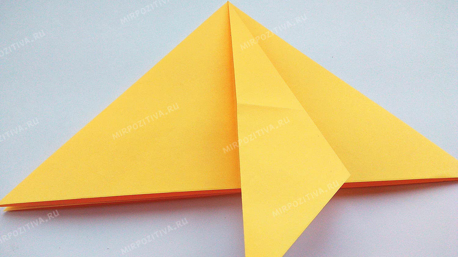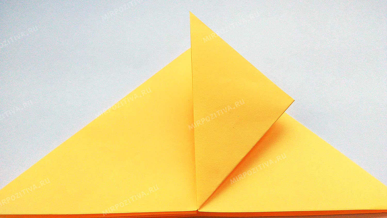 Шаг 9. Те же самые операции проделайте со вторым уголком верхнего треугольника и опустите острый угол вниз так, чтобы 2 части были абсолютно идентичными.